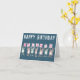 Cartão de aniversário para alguém com 7 Cartas. Cartão de aniversário divertido com ilustração de coelhos cor-de-rosa e azul. Os coelhos estão segurando cartas para soletrar o nome.