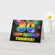 A frente desta divertida, colorida e alegre design de cartão de saudação com tema de aniversário apresenta um grande número de "80" e a mensagem "FELIZ BIRTHDAY", ambos tendo um gradiente de padrão inspirado no espectro do arco-íris, juntamente com um nome ousado de destinatário personalizável amarelo. A frente também apresenta um padrão de fundo inspirado em fogos de artifício comemorativos de burst multicoloridos. O dentro apresenta uma mensagem de saudação de aniversário editável, ou talvez pudesse ser apagado e deixado o vazio se uma mensagem fosse escrita manualmente. Um vibrante cartão de aniversário personalizado como este pode ser uma forma divertida de celebrar o oitavo aniversário de alguém. [~Z0000471]