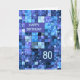Cartão de 80. Deseje feliz aniversário com um cartão elegante. Os quadrados azuis e roxos se combinam para fazer um legal cartão de aniversário masculino. Deseje um feliz aniversário e sorria ao mesmo tempo.