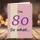 Um cartão de saudação de excelente para alguém, especialmente para ela (por causa do esquema de cores bege, rosa e roxo) comemorando o 80. Ela vem com uma citação engraçada e motivacional que tenho 80 e assim por diante, e é perfeita para uma pessoa com senso de humor.