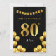 Cartão 80th Birthday Card Black and Gold Balloons