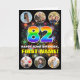 A frente deste alegre e divertido design de cartões de saudação de aniversário com tema de cumprimentos apresenta um grande número de "82" com um espectro vibrante de arco-íris inspirado em gradiente, juntamente com a mensagem "FELIZ 82° ANIVERSÁRIO" e um nome editável, em um padrão inspirado em fogos de artifício multicoloridos. Perto do topo e do fundo da frente estão imagens que podem ser personalizadas, talvez com fotos da família e amigos do receptor. O dentro tem uma mensagem de saudação de aniversário editável, ou talvez possa ser apagado e deixado vazio se uma mensagem for escrita manualmente. Um empolgante e personalizado cartão de cumprimentos de aniversário como este pode ser usado para celebrar o oitenta e segundo aniversário de alguém. (Fotografia © Storytree Studios, Stanford, CA.) [~Z0000660]