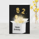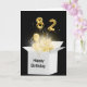 Balões Dourados e feixes de luz cintilantes brilham em uma caixa branca sobre fundo preto no 82º aniversário