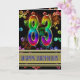 Uma explosão de cor com este incrível cartão de aniversário. Fogos de artifício e bolhas em cores do arco-íris, e um fundo de ouro fino para a saudação.