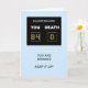 Um cartão de aniversário engraçado para dar um aniversário. Um placar mostra a idade como a pontuação vencedora contra a morte. As palavras "Você está vencendo, continue!" completam a cena.
