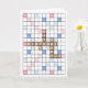 Cartão de aniversário de 84 anos para alguém que adora jogar jogos de palavras. As cartas explicam 'Feliz 84º aniversário para você'. A imagem de fundo é um conselho de jogo de palavras.