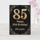 Cartão 85.º aniversário - Quadro negro e Dourado com bril