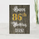 A frente deste design de cartão de saudação com tema de aniversário elegante apresenta a mensagem "Feliz 86º aniversário", além de um nome de destinatário personalizável. Parte da mensagem está no texto elaborado em estilo script, o grande número "86º" apresenta um padrão de aparência imitado/falsa inspirado em ouro, e o fundo tem um padrão de imitação/falsa inspirado em madeira. O dentro tem uma mensagem de saudação de aniversário personalizável, ou talvez pudesse ser apagado e deixado o vazio se uma mensagem fosse escrita manualmente. Um cartão de saudação de aniversário editável como este pode ser uma maneira respeitável de entregar uma mensagem de saudação de aniversário a alguém que está celebrando seu oitenta e sexto aniversário. [~Z0000561]