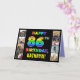 A frente deste alegre e alegre design de saudação de aniversário apresenta a mensagem "HAPPY 86TH BIRTHDAY", com o texto tendo um espectro multicolorido de arco-íris inspirado em um padrão de gradação, junto com um nome de destinatário personalizado. As fotos à esquerda e à direita da mensagem com formato arco-íris na frente do cartão podem ser personalizadas, talvez com fotos do receptor, da família e dos amigos do destinatário e/ou do(s) remetente(s) do cartão. O dentro tem uma mensagem de saudação de aniversário personalizável, ou talvez pudesse ser apagado e deixado o vazio se uma mensagem fosse escrita manualmente. Um cartão de cumprimentos de aniversário ousado e personalizado como este pode ser usado para celebrar o oitenta e sexto aniversário de alguém. (Fotografia © Storytree Studios, Stanford, CA.) [~Z0000667]