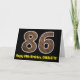 A frente deste design de cartão de saudação temático de aniversário rústico e divertido apresenta um grande número de "86" com um padrão de aparência falso inspirado em grãos de madeira, juntamente com a mensagem "Feliz 86.º Aniversário", e um nome personalizado. O dentro apresenta uma mensagem de saudação de aniversário editável, ou talvez pudesse ser apagado e deixado o vazio se uma mensagem fosse escrita manualmente. Um cartão de aniversário personalizável como este pode ser uma maneira divertida de reconhecer o oitenta e sexto aniversário de alguém. [~Z0000431]
