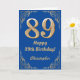 Cartão 89º aniversário - Quadro Azul e Dourado da Largura