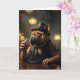 Um distinto buldogue vestindo um chapéu e colete fica em um quarto elegante e iluminado e desajeitado, segurando um copo de uísque para um 90. O texto dentro pode ser alterado.