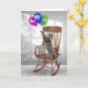 Gato de mesa lúgubre, sentado sobre uma cadeira de balanço de madeira, e procurando um buquê colorido de balão para 90. O número de idade pode ser alterado.