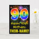 Cartão 90 Birthday: Padrão Divertido do Fireworks + Rainb
