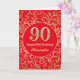 Cartão 90 Birthday Red e Dourado Padrão Floral