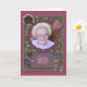 Diga Feliz Aniversário com um cartão de efeito de artesanatos de reserva de sucata. Adicione uma foto da aniversariante para personalizar este cartão maravilhoso. Com muitas flores, borboletas, e arcos, este cartão certamente se encantará. Norma Cornes. Observe que este é um cartão impresso.