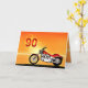 Uma moto semelhante a um Harley parado ao lado do mar com um glorioso pôr do sol laranja. Um cartão de excelente para qualquer pessoa que goste de bicicleta e motocicletas. Veja toda a gama de cartas para idades e relacionamentos na minha loja. Todos os direitos de autor da trabalho de arte Norma Cornes