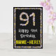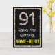A frente deste design de cartão de saudação floral, inspirado na natureza, tem a mensagem "Feliz 91ruas Aniversário" e um nome de destinatário personalizável. O grande número "91" e a borda na frente consistem em ícones de flores. O dentro tem uma mensagem de saudação de aniversário personalizada, ou talvez possa ser apagado e deixado vazio se uma mensagem for escrita manualmente. Um cartão de saudação floral de aniversário divertido, personalizado como este pode ser uma maneira divertida de entregar alguns desejos de aniversário a alguém que está celebrando seu 91º aniversário. [~Z0000648]