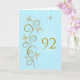 92º aniversário com borboletas ouros. Um pergaminho floral com flores estilizadas e borboletas delicadas. Um cartão de aniversário incrível. Veja toda a gama de cartas para idades e relacionamentos na minha loja. Borboletas de ouro feitas de delicado pergaminho trabalham em flecha ao redor deste elegante e belo cartão de aniversário