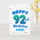 Cartão 92nd Balloon Number Custom Name Birthday Card