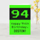 Cartão 94.º aniversário: Nerdy / Geeky Style "94" e Nome
