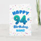 Cartão 94th Balloon Number Custom Name Birthday Card