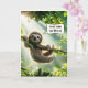 Uma preguiça bonita pendura de um galho arbóreo rodeado por folhas verdes e peludas, com a luz do sol a passar pela cobertura durante 95 anos