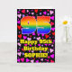 The front of this fun and happy birthday greeting card design features a large number “95” having a rainbow spectrum gradient inspired pattern. It also features the message “Happy 95th Birthday,”, and an editable name. The background of the front features a pattern of heart shapes with colors like purple, red, and pink. The inside has an editable birthday greeting message, or could perhaps be cleared and left blank if a message is to be written by hand instead. An upbeat, customized birthday greeting card like this might be sent in celebration of somebody’s ninety-fifth birthday. [~Z0000551]