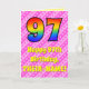 Cartão 97.º aniversário: Stripes e corações cor-de-rosa,