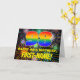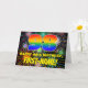 A frente deste empolgante e vibrante design de cartão de saudação temático de aniversário apresenta um grande número "98" com um padrão de gradação inspirado no espectro multicolorido do arco-íris, juntamente com a mensagem "FELIZ 98º ANIVERSÁRIO", e um nome de destinatário personalizado. O fundo da frente tem um padrão alegre e colorido que se parece com fogos de artifício comemorativos. O dentro tem uma mensagem de saudação de aniversário personalizada, ou talvez pudesse ser apagado e deixado vazio se uma mensagem for escrita manualmente. Um cartão de saudação de aniversário alegre e editável como este pode ser enviado para comemorar o aniversário de 98 anos de alguém. [~Z0000619]