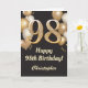 Cartão 98.º aniversário Balões Negros e Dourados Confetti
