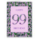 Cartão de aniversário de 99 anos para uma senhora que gosta de flores. Um cartão de aniversário elegante com um fundo de flores margaridas roxas. Este é o cartão perfeito para uma garota que ama tudo floral ou roxo!