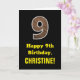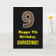 Esta divertida design de cartão de saudação com tema de aniversário apresenta um grande número "9" com um padrão de estilo de fibra falsa inspirado em madeira na frente. A frente também apresenta a mensagem de saudação de aniversário "Feliz 9.º Aniversário", e um nome de destinatário personalizado. O dentro apresenta uma mensagem de saudação de aniversário personalizada, ou talvez possa ser apagado e deixado o vazio se uma mensagem for escrita manualmente. Um cartão de aniversário personalizável como este pode ser uma maneira divertida de enviar uma mensagem para celebrar o nono aniversário de alguém. [~Z0000433]