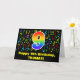Este design de carta de saudação divertida, colorida e vibrante, com tema de aniversário, apresenta um grande número "9" com um padrão inspirado no gradiente do espectro arco-íris, juntamente com a mensagem "Feliz 9.º Aniversário", e um nome de destinatário personalizável. A frente também apresenta um padrão de várias notas e símbolos de música com várias cores e tamanhos. O dentro apresenta uma mensagem de saudação de aniversário personalizada, ou talvez possa ser apagado e deixado o vazio se uma mensagem for escrita manualmente. Um cartão de saudação de aniversário personalizado como este pode ser usado para reconhecer o nono aniversário de alguém. [~Z0000426]