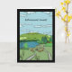 A aposentadoria espera, parabéns na aposentadoria, o cartão de papel com uma ilustração do cenário do lago com cabines, as árvores, as colinas, trajetos cinzentos da rocha, e um céu em parte nebuloso. Partes da cortesia de imagem de Jackowski/Pixabay. Arte, imagem, e estúdios de Shoaff Ballanger do © dos direitos reservados do verso.