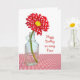 Margarida de bolinhas vermelha e branca numa garrafa de safena para a sobrinha.