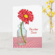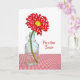 Margarida de bolinhas vermelha e branca numa garrafa de safena para Primo.