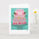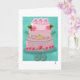 Grandioso e ornamentado, esta peça apresenta um bolo de três andares que se ergue contra um rico fundo azul-esverdeado. O contraste entre o fundo profundo e as rosas cor-de-rosa exuberantes e realistas cria uma profundidade visual impressionante.