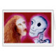 Este cartão caracteriza um casal lunático--uma mulher e um esqueleto--contratado na conversação íntimo. Apresenta o fundo vermelho vibrante da aguarela original, que contrasta dramàtica com os ossos brancos e as sombras pretas do esqueleto alegre. Oferece uma tomada incomum "no amor verdadeiro" e na paixão do dia dos namorados e faz uns namorados maravilhosos para um special--e incomum--alguém.