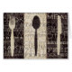 Estúdio de Pela do ©/Apple selvagem. Uma imagem preto e branco de uma forquilha, de uma colher e de uma faca. O fundo tem as palavras escritas nele.