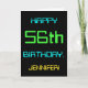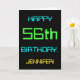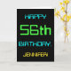 Este simples e divertido design de cartões de aniversário apresenta uma mensagem como "FELIZ 56º ANIVERSÁRIO, JENNIFER!" Ele também apresenta uma aparência divertida inspirada na computação digital. O nome na frente e a mensagem no dentro podem ser personalizados. Ele poderia ser enviado ou dado a alguém que comemora seus cinquenta e seis anos de aniversário e que talvez trabalhe (ou trabalhou antes da aposentadoria) como programador de computador, desenvolvedor de software, administrador de banco de dados, administrador de rede, engenheiro de eletrônicos ou que de outra forma aproveita o uso de computadores. [~Z0000100]