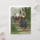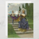 Este design apresenta uma pintura do artista britânico Pre-Raphaelite John Collier (1850-1934). Mostra uma senhora rica vestindo um vestido elegante num cenário medieval. Talvez ela seja uma princesa ou uma nobre. O longo trem de tecido ligado ao vestido da senhora está sendo transportado por dois garotos jovens, que também fazem parte do tribunal aristocrático. A senhora está caminhando por alguns passos de pedra de uma forma graciosa e refinada. Há gramados manicurados em ambos os lados dela. Há também algumas árvores altas de bezerro. O céu é azul com algumas nuvens brancas, e há montanhas à distância. A fantasia que a senhora está vestindo é azul e ouro, e ela tem uma morada elaborada num estilo que estava na moda na Idade Média Europeia. O vestido da senhora é azul escuro com um padrão de pulgas-de-lis ouro. O trabalho artístico original foi pintado por John Collier em 1920.