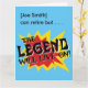 Cartão de aposentadoria divertido para um hilário no dia passado antes da aposentadoria. [Nome da aposentada] pode se aposentar, mas a lenda continuará! Personalize o nome da sua aposentadoria. Ou personalizar o outro texto também, para se adaptar a qualquer tipo de festa de despedida. Há muito espaço para todos no escritório assinarem este cartão grande.