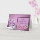 Um Dia de as mães encantador para sua esposa. Um cisne branco, flores bonito numa matiz roxa com texto personalizável