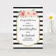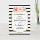 Parabéns no seu cartão do dia do casamento para a neta e seu marido com listras pretas e brancas e flores cor-de-água rosa, e verso sentimental.