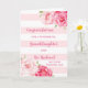 Parabéns no seu cartão do dia do casamento para neta e marido com listras rosa e brancas e flores rosa-d'água, e verso sentimental.