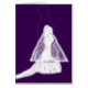 Detalhe do impressão, o "trovão 1: Eu sou" por Judith Laura que interpreta a escritura gnóstico, mente perfeita do trovão. Pode ser usado wedding convites, anúncios, parabéns, giftcards, ou obrigado-yous. O noivo é grande sombra-figura atrás da noiva. O fundo é profundamente violeta.