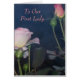 Este cartão para a primeira senhora, da igreja tem rosas de um rosa da fotografia na parte dianteira.