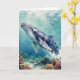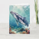 A oceanic themed birthday card with a nautical poem inside. The front has a beautiful illustration of an impasto style whale swimming deep in the sea by vibrant colorful coral.
