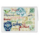 Esta design mostra as palavras para "Paz" em 15 das línguas do Oriente Médio. Os designs azulejos têm a forma de 5 massas de água na região do Médio Oriente.